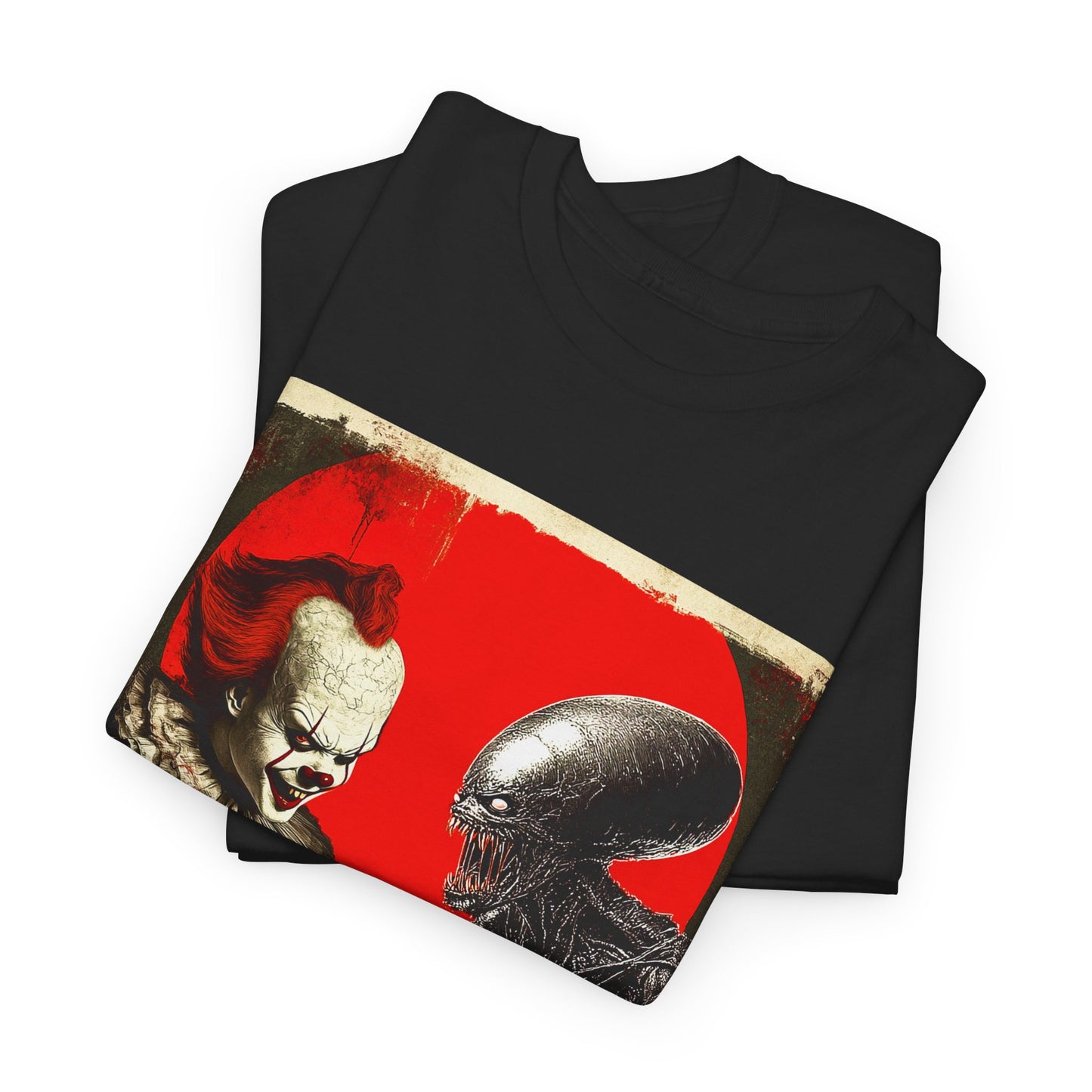 Whether youâre a fan of classic horror or just love unique and eye-catching designs, this tee is a must-have for your collection. Wear it to your Halloween party, horror movie marathon, or just to show off your love for the spooky season. The âPennywise vs Alienâ Tee is sure to be a conversation starter and a standout piece in your wardrobe! đđť